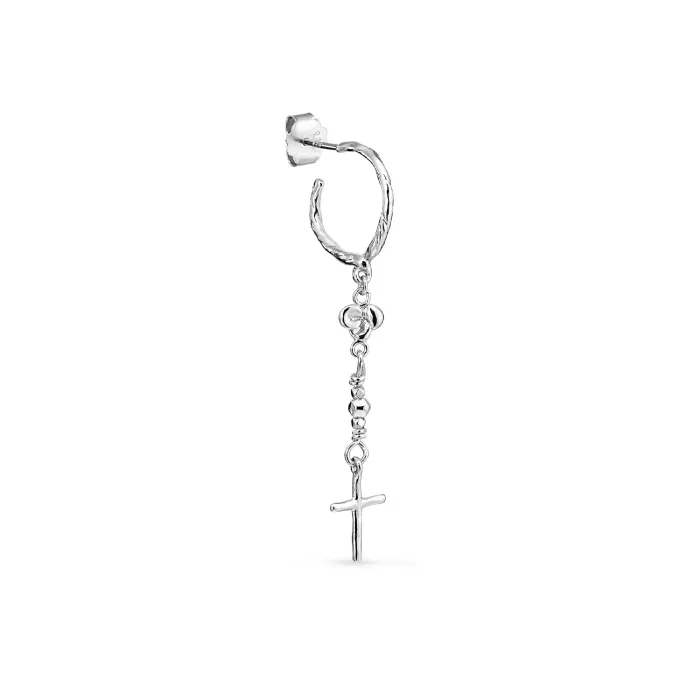 Jane Kønig Creole With Cross Øredobbe Single Sølv CWCHOL23-S