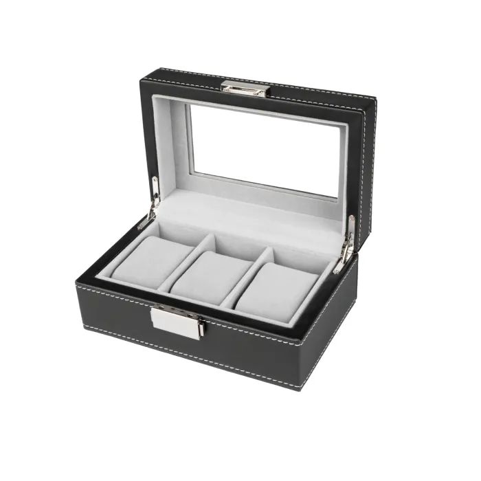 Ditur Klokkeboks 3 klokker Svart Kunstskinn KXD0521