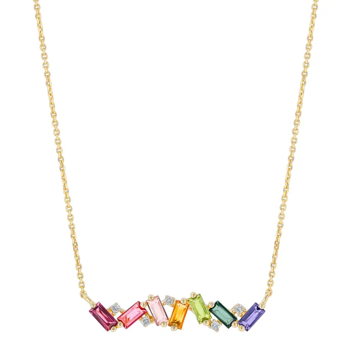 Suzanne Kalan Franesia Rainbow Bar Halskjede 14 kt. Gull 0,05 ct. PN507-YGRBW